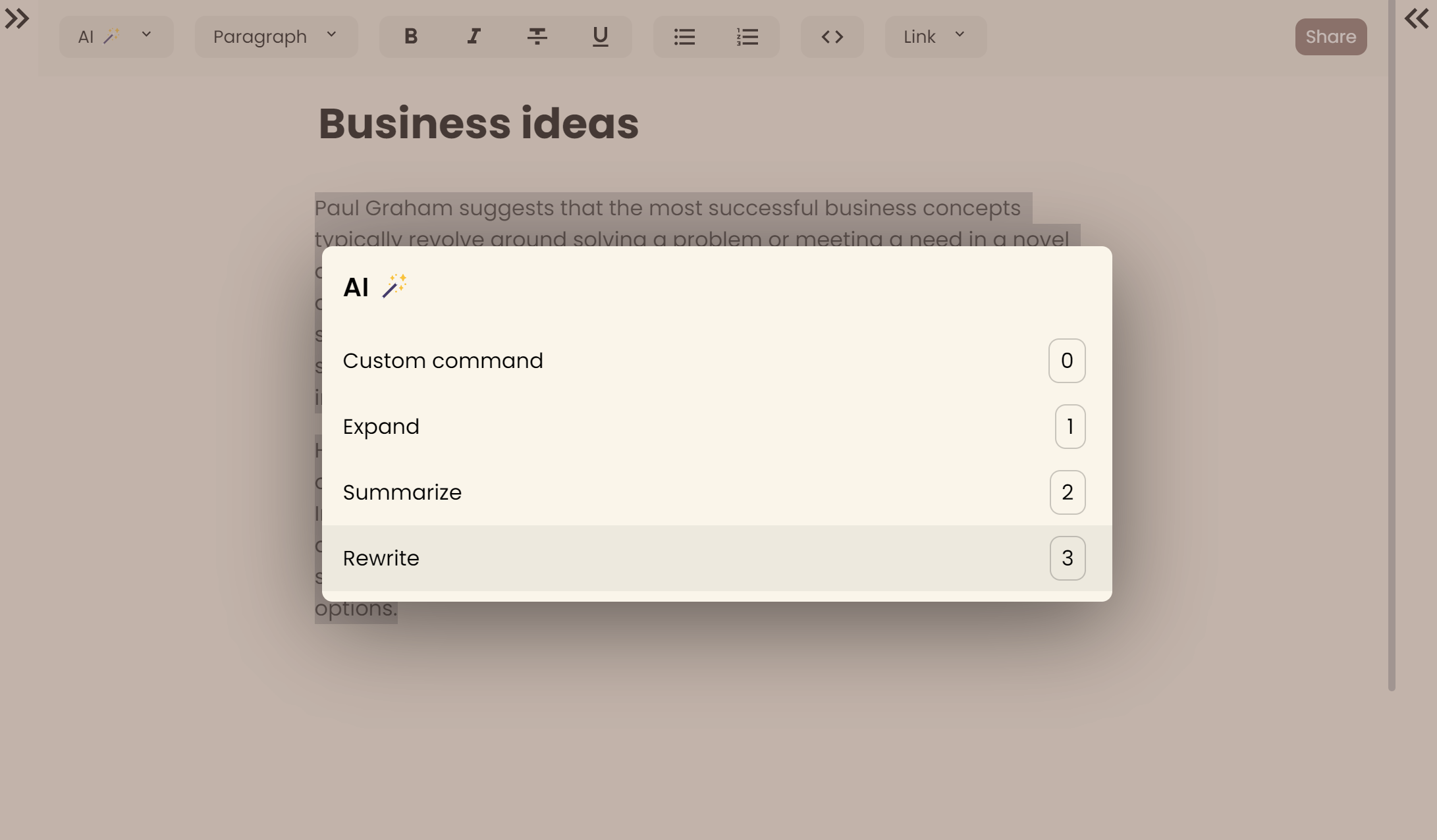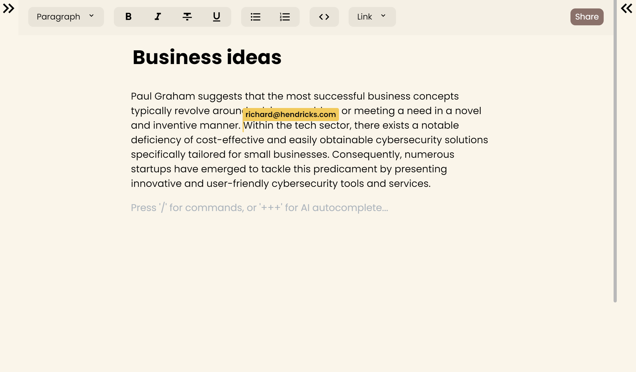 Just write '+++' and the AI will continue your sentence. It's like autocomplete, but for your thoughts.