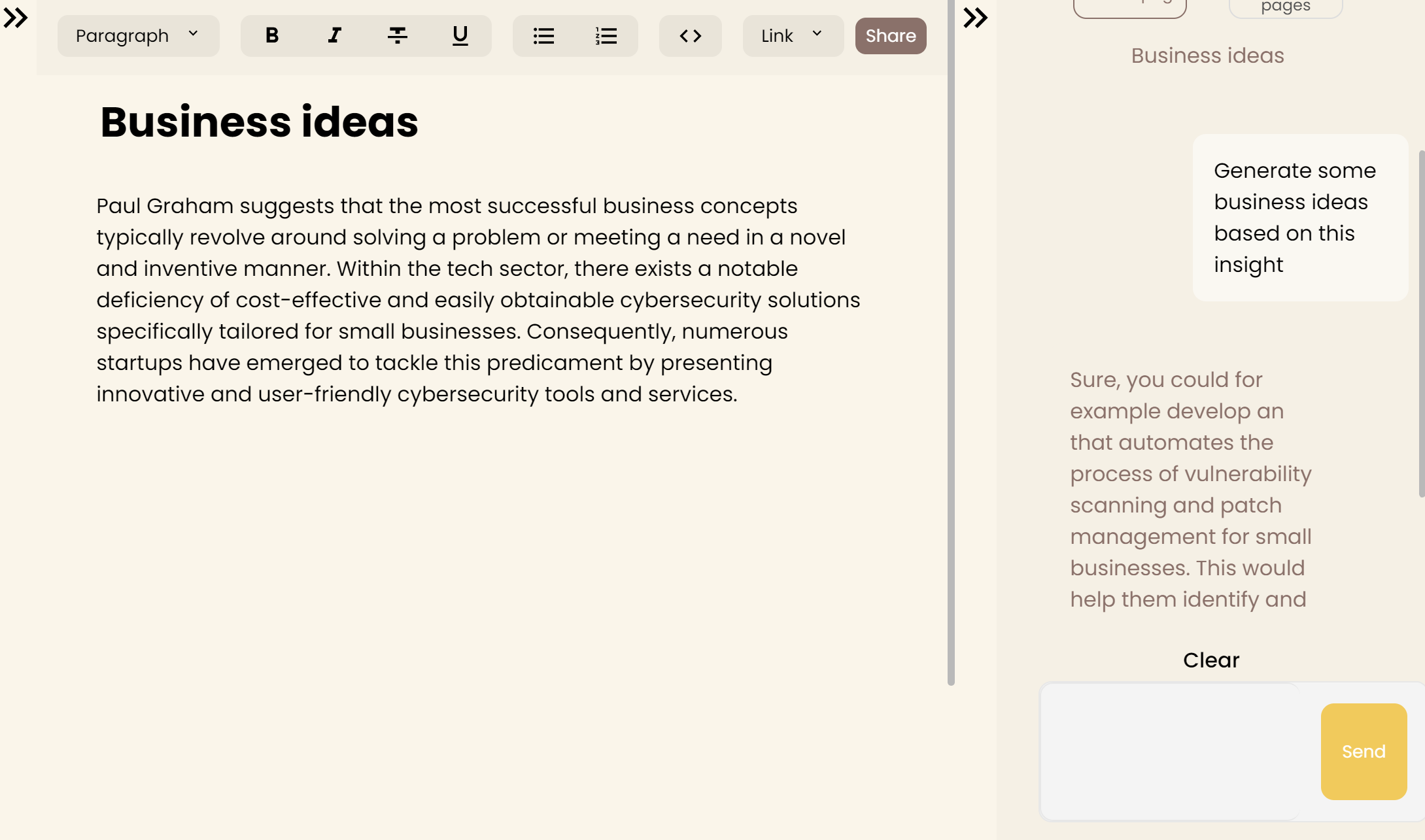 No more copy-pasting to ChatGPT. Open the sidebar and start chatting about your notes.