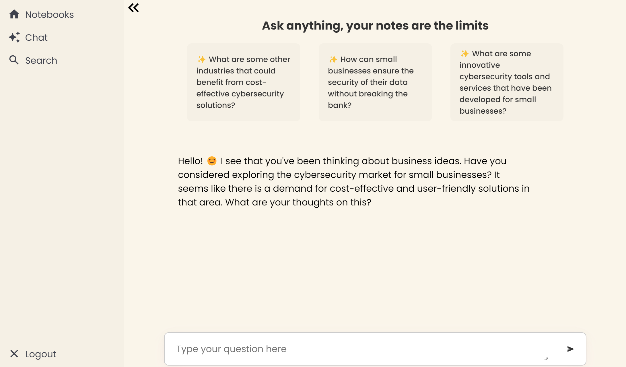 Notebook-Chat's AI understands you, and helps you recall your notes, discuss ideas, and stay organized.